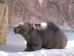 The keeper rubs his coat when he lets Hiroki out every morning.