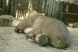 The keeper came to the wallaroos' pen to clean at two thirty today.