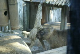 The keeper came to the wallaroos' pen to clean at 10:15.