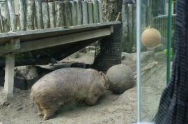 One of them is giving the wombat a toy.