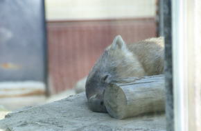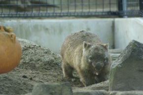 飼育員さんがワラルーの庭を掃除しに来た時や