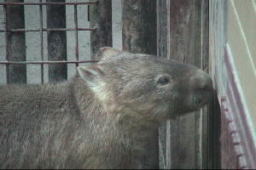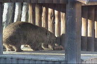 お願い、開けて! お腹がすいて、戸を噛んじゃうよ〜。 |