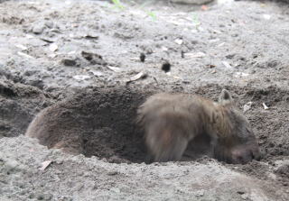 飼育員さんがワラルーの庭を掃除をしているとき、ぼくは激しく金網を噛んだ。