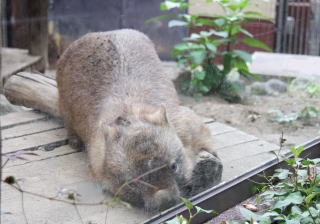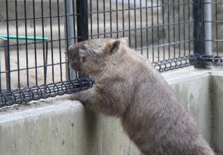 飼育員さんが掃除しているときは金網を噛んだり、土掘りをした。